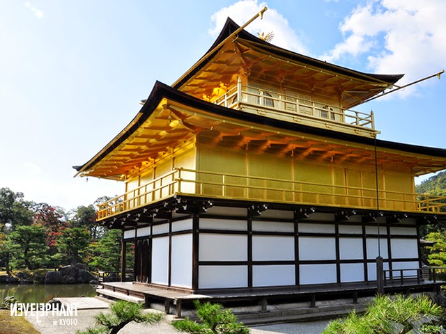 印象中,月曆裡的金閣寺跟那連成一線的倒影,很大很壯觀,但在真的看到之後,那小小的欣喜,其實只存在穿過小洞後進入桃花源般瞬間。要問為什麼,除了記憶中大小落差之外,金光閃閃的東西,大概不是大象喜歡的調性吧...。扣除排隊、找空擋拍照的時間,走一圈金閣寺似乎用不上1小時的時間。所以當知道有僧人因為它太美,最後選擇跟它同歸於盡的故事,一時間頗難想像那個畫面。不過這種事情,會發生在性格可以這麼極端的日本人身上,應該是不足維奇吧。