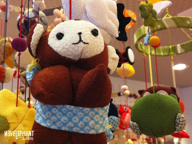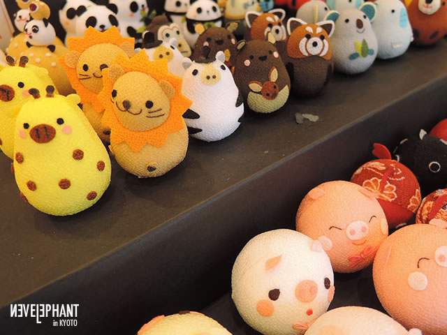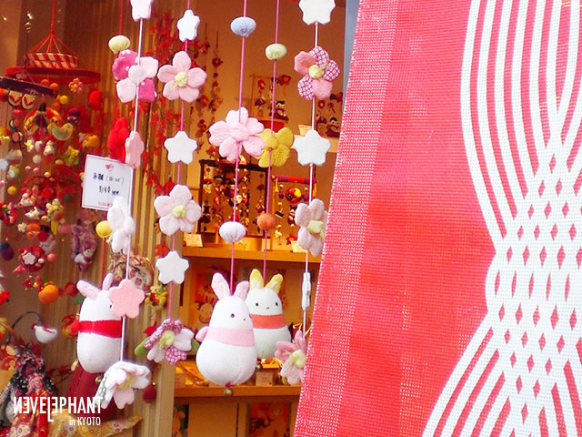 慕名前往金閣寺,繞了一圈之後,不瞞大家說,內心有些許的小失望,一邊跟同伴碎唸著一邊緩慢往巴士站"金閣寺道"的方向走去。雖然說金閣寺大名鼎鼎,但週遭不像清水寺那產寧坂、二年坂那樣熱鬧,東張西望的看過去,商店並不多,就在快要接近十字路口時,突然五顏六色活潑可愛掛飾吸引住。