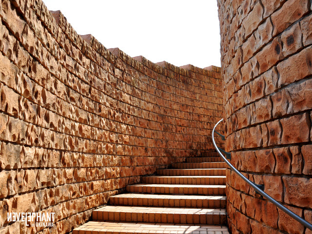 ▲ 電梯出來之後還再走一段樓梯。內心OS~好喜歡這石頭的質感